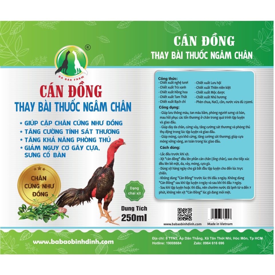 - Không dùng '' cán đồng '' trước khi thi đấu 3 ngày. Không dùng '' Cán đồng '' sau khi tập luyện 3 ngày và sau khi thi đấu 7 ngày. Sau khi tập luyện hoặc thi đấu, nên chườm nước đá lạnh từ 5 -7 phút, không nên xịt '' cán đồng '' lúc gà đang mệt mỏi.